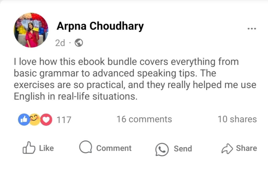 The eBook bundle is helpful for anyone who wants to improve their spoken English skills, whether they are beginners or at an intermediate level. It’s perfect for students, working professionals, immigrants, or anyone who wants to speak English more clearly and confidently.